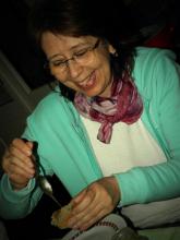 Tizenöt éve, amióta a faluba költöztek, elkezdték kialakítani maguknak azt a csoda világot, amiben a langyossá melegedő időben mi is gyönyörködhettünk. Dúsan, festményekbe illő színekben pompázott a kert, virág és illat-orgia amíg a szem ellát... minden kis csemete fa csurig szebbnél-szebb virágokkal, tövükben pedig a hagymás tavaszi virágok egész palettája: nárcisz, jácint, tulipán. Ibolya óriási tudásának köszönhetően megtudtuk, hogy hogyan is segítik a tavaszi hagymás virágok a kis fákat, a gyümölcsöst borító gyepben lakó rovarok, az egész természet által kialakított és a hozzáértéssel létrehozott környezet a gyümölcsfák életét. Kiderült, hogy a természet olyan bölcs, hogy ha hagyjuk és segítjük a munkáját, akkor a fákat nem kell permetezni, semmilyen agresszív szerrel nem kell beavatkozni a természet törvényeibe. És ezt a fák megháláják.