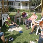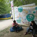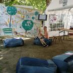 Felállítottuk a rendezvénysátrat, kifeszítettük a molinónkat és elhelyeztük a szénával megtöltött farmerhuzatos ülőkéket. Készen álltunk a beszélgetésekre és a workshopokra.
