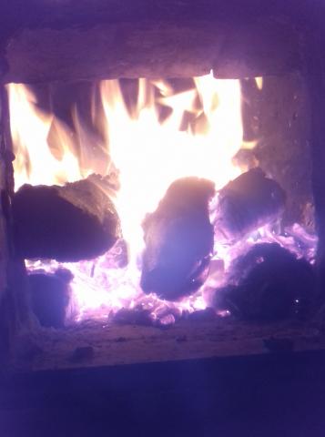 A kályha be is lett gyújtva, hogy fűtse a szobát és gyorsítsa a száradást.