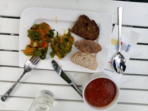 A magbank megtekintését követően a kertben üzemelő, helyi zöldség- és fűszernövényeket, gyümölcsöket feldolgozó konyhán készített ebédet fogyasztottunk. A szabadég alatt, szép környezetben, barátságos kiszolgálással jutottunk a finom ebédhez, a még melengető napsugaraktól kényeztetve.