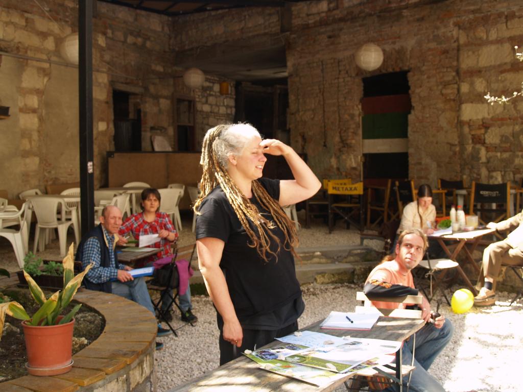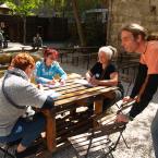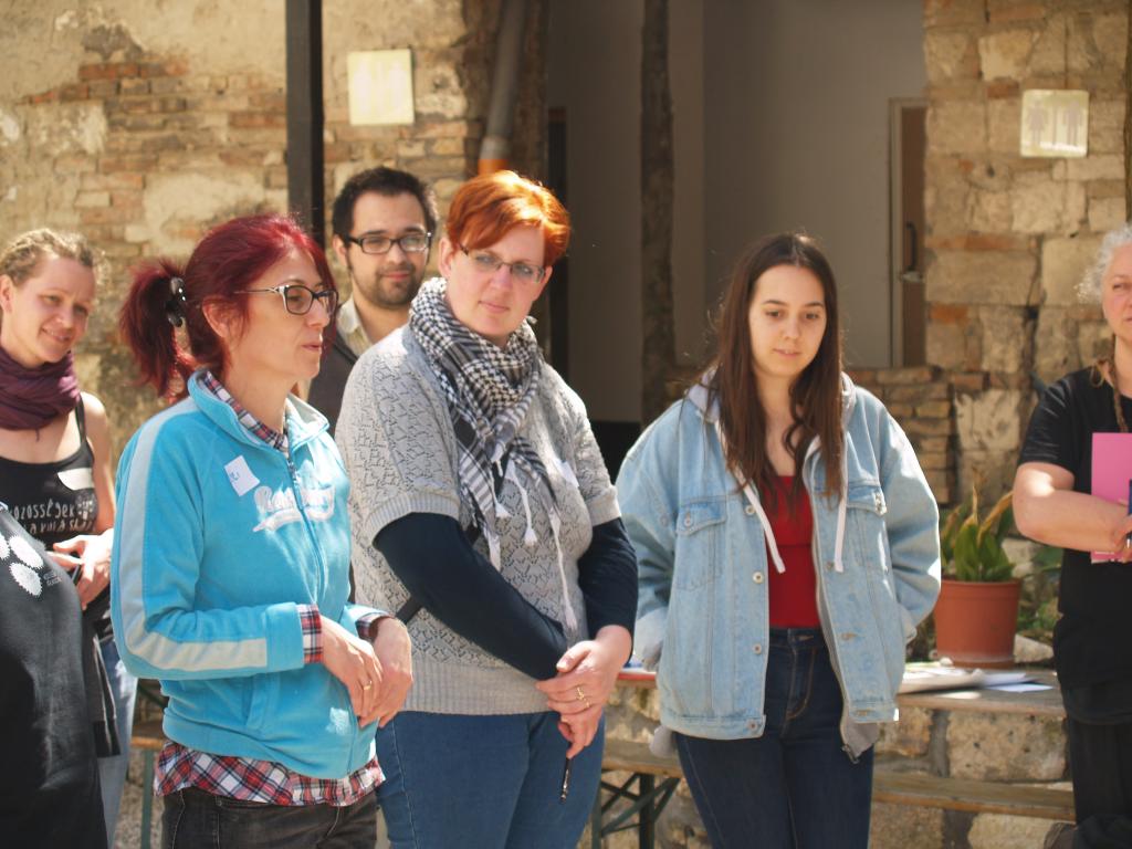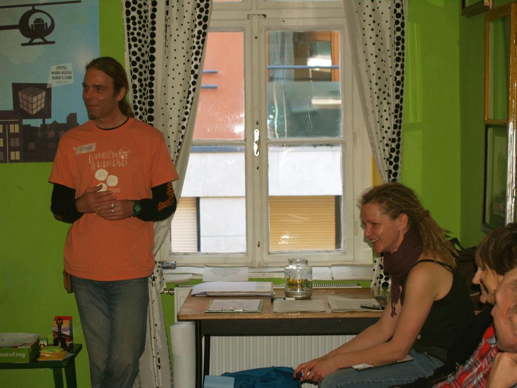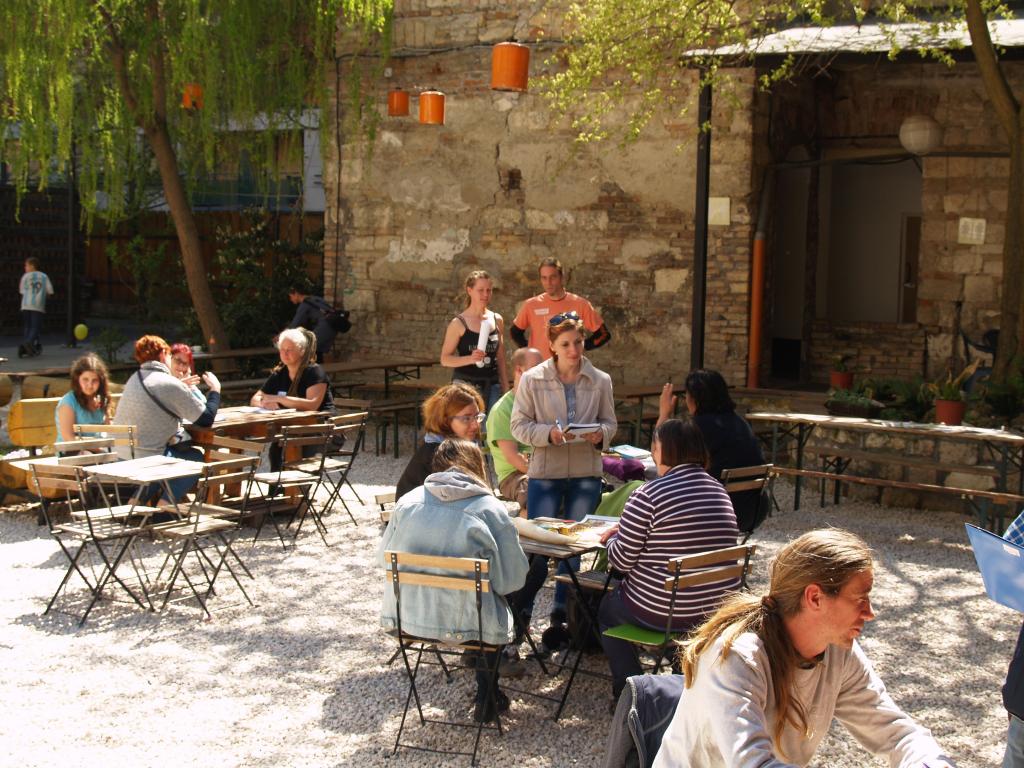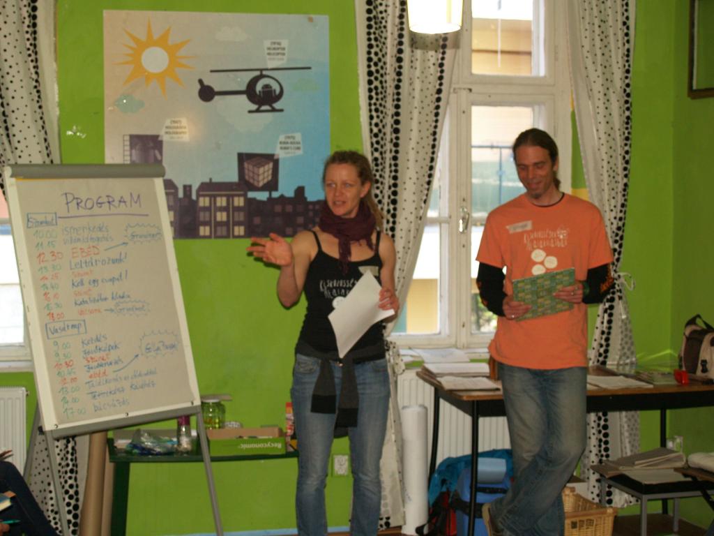 A Grund volt a helyszín, ebédelni a Grundk3rtbe és a Gólyába mentünk. Szóval erősen a Grundkert környékére koncentrálódott a dolog. De ez érthető is, hiszen ők adták be mini-projektként az ötletüket még tavasz elején, hogy létrejöhessen ez a képzés az április 16-17.-i hétvégén. A szervezést is bevállalták, de ahol kellett, ott a stáb is besegített. Például Tracey főzte az ételt mindkét napra...