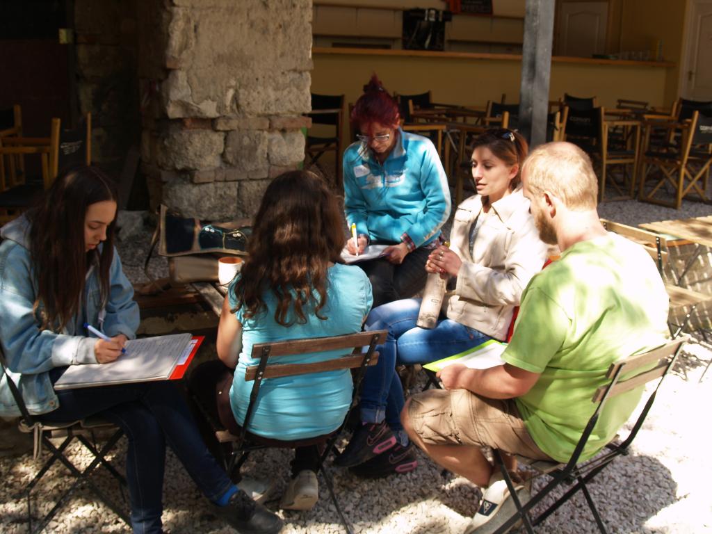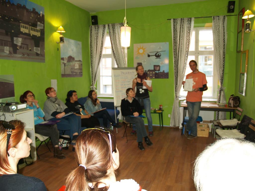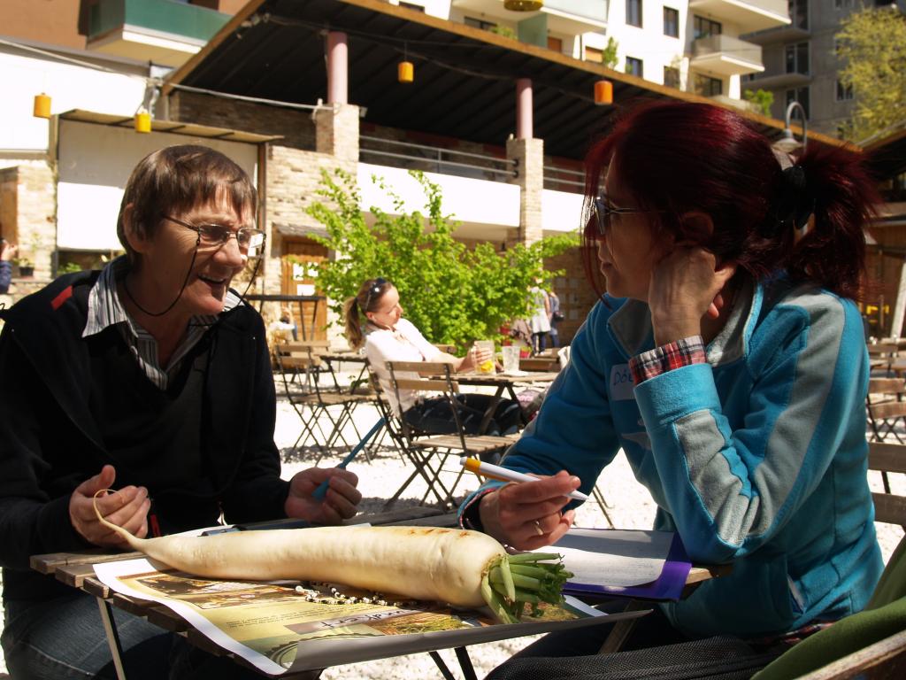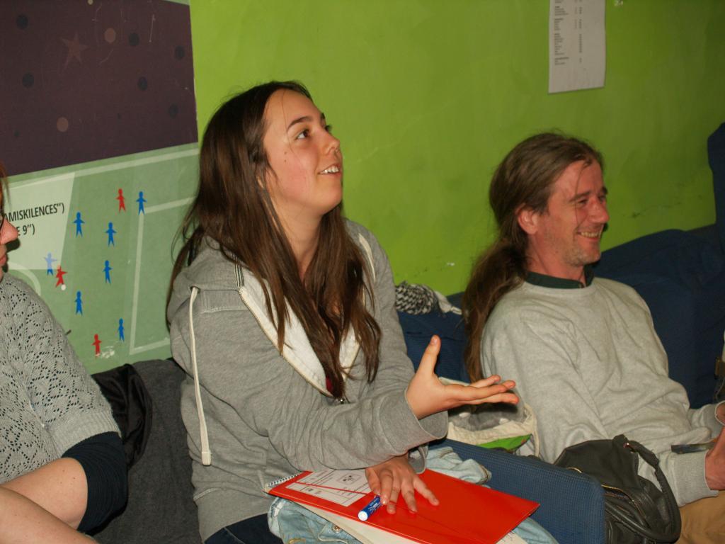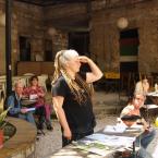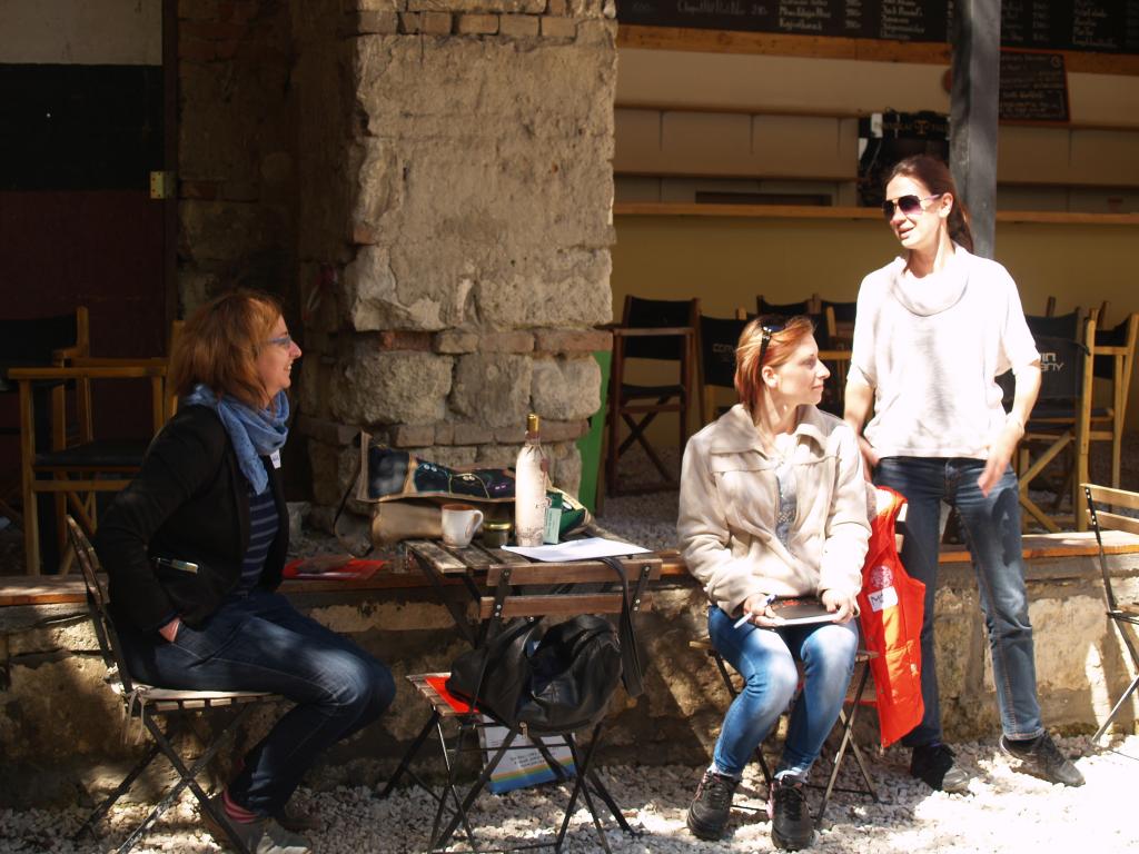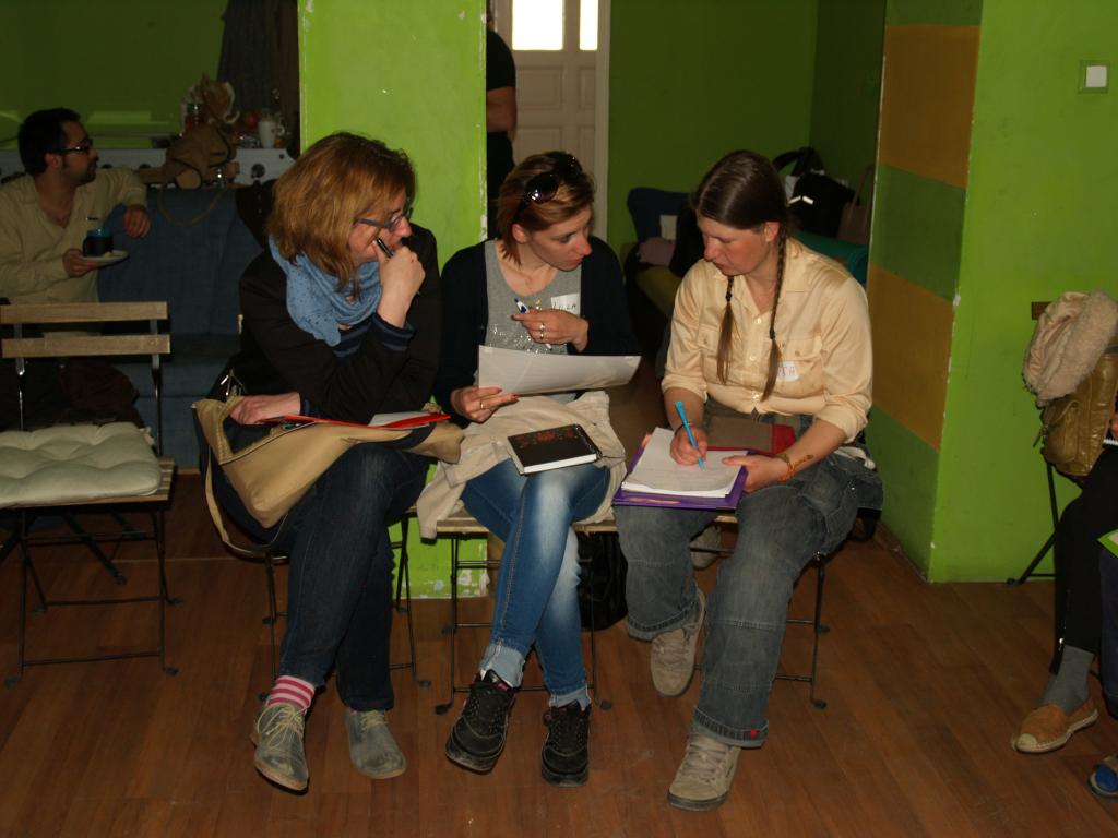A Grund volt a helyszín, ebédelni a Grundk3rtbe és a Gólyába mentünk. Szóval erősen a Grundkert környékére koncentrálódott a dolog. De ez érthető is, hiszen ők adták be mini-projektként az ötletüket még tavasz elején, hogy létrejöhessen ez a képzés az április 16-17.-i hétvégén. A szervezést is bevállalták, de ahol kellett, ott a stáb is besegített. Például Tracey főzte az ételt mindkét napra...