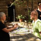 Aztán a másik szexepilje az volt a képzésnek, hogy izgalmas új közösségek tagjai jelentkeztek. A Vajdaságból érkező magyarkanizsaiak például remek dolgokat tesznek már régóta a kézműveskedéstől a vegyszermentes gazdálkodásig. De az is jó volt, hogy Lókútról nemcsak a helyi közösséget összerázni akaró kulcsember érkezett (a kislányával), hanem az önkormányzati munkában évtizedes tapasztalattal rendelkező egykori képviselő is vele tartott. Örültünk a kecskeméti Medina Adománybolt két aktivistájának, a Jászszentlászlóról érkező Istvánnak, a Népi Ősgyógyászat csapatának, a dunakanyari kezdeményezést képviselő Emőnek. És persze Annának, aki egy waldorfos középiskolás, és ő volt a legifjabb tagja a társaságnak, tőle nagyon sokat kaptunk.