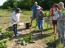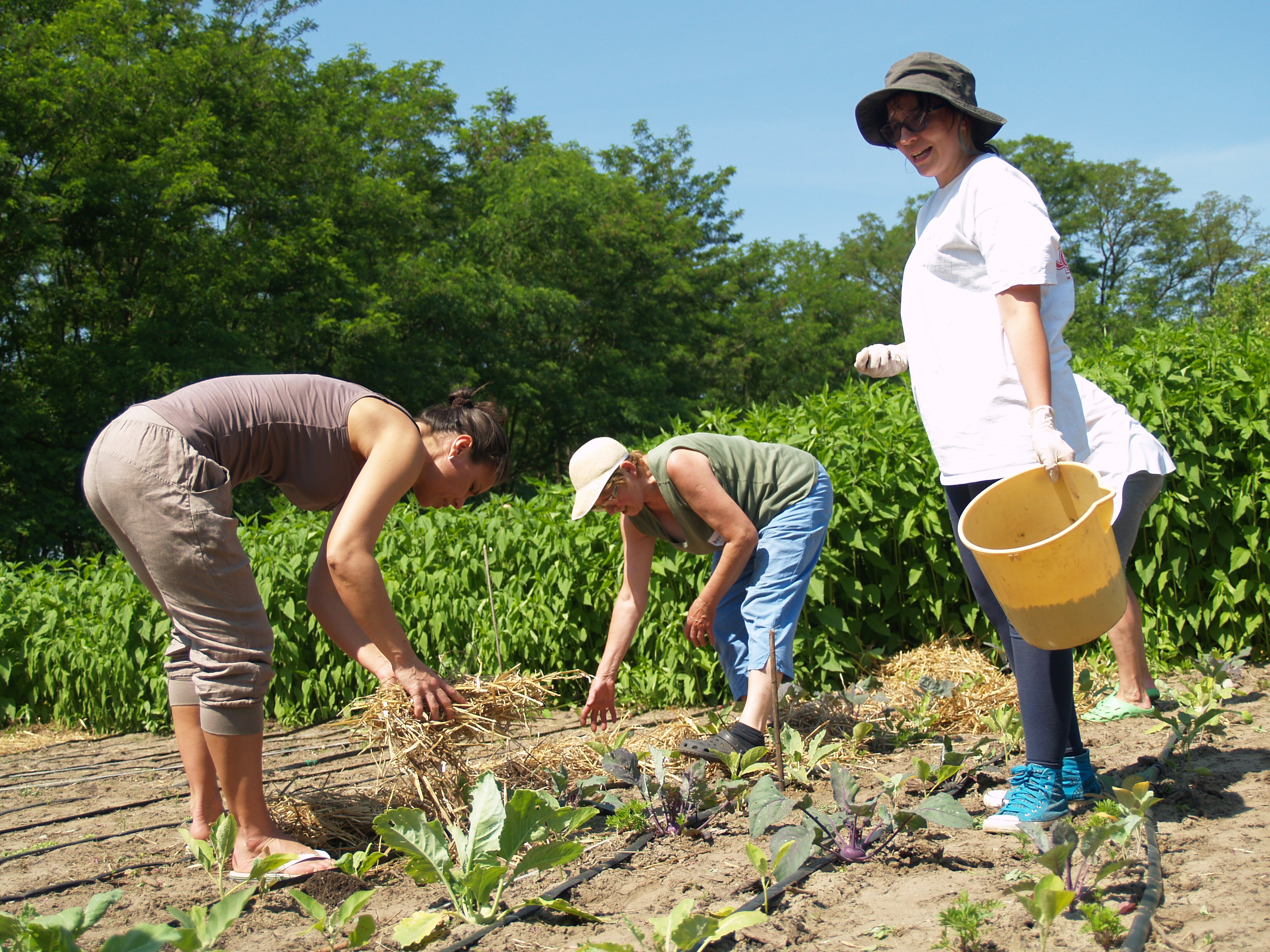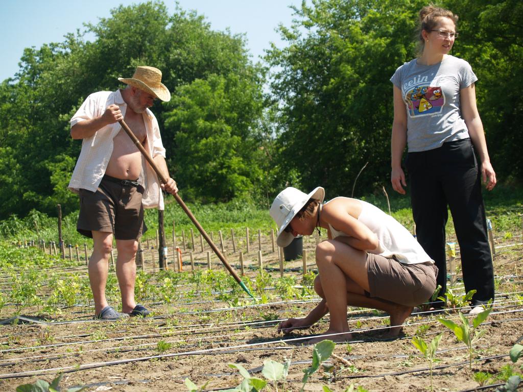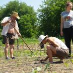 Mulcsozás, kapálás, trágyázás, ültetés - ezek voltak a fő csapások, de persze egy sor fontos dolgot végigvett az a majd' húsz ember, aki végül Kunbábonyban töltötte a vasárnapot. A Mirek Barbara, ökokertész vezette gyakorlati képzés lényege az volt, hogy mindenki mindent kipróbálhasson, izzadjon, összekoszolja magát és persze tudjon meg többet az organikus gazdálkodásról.