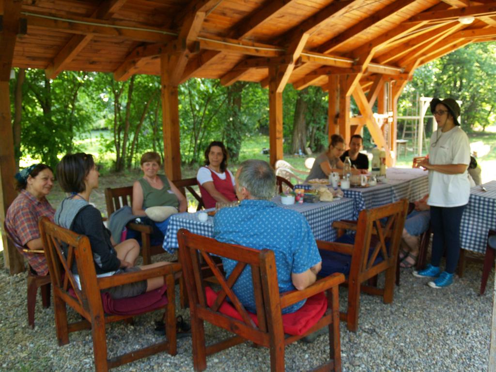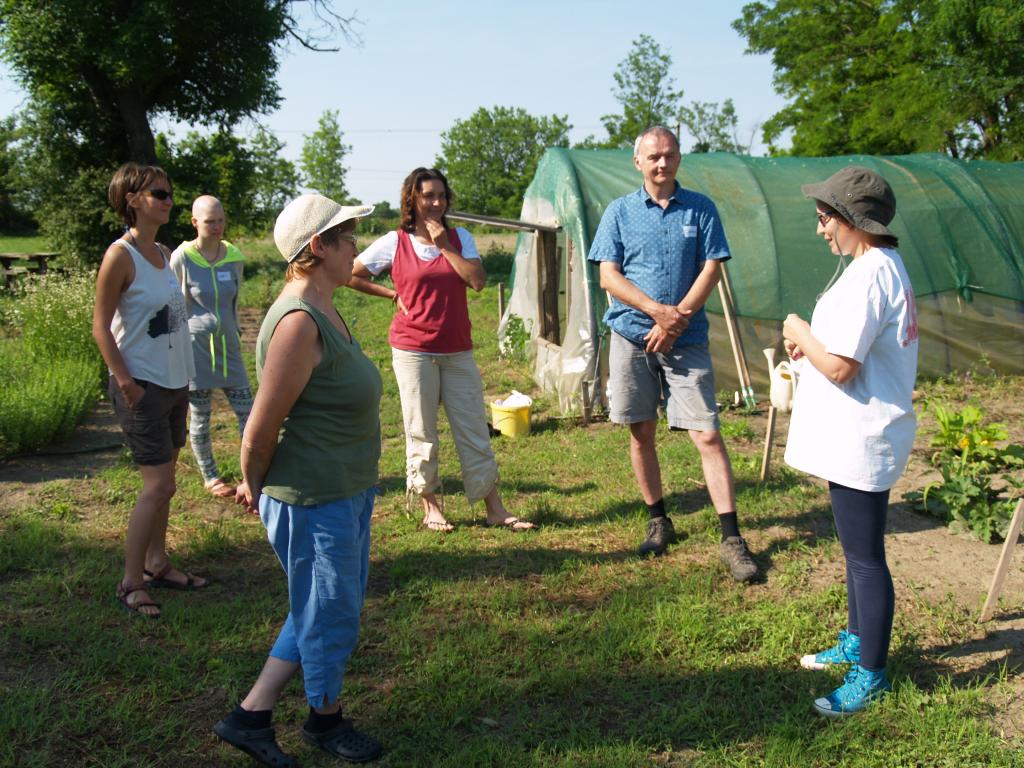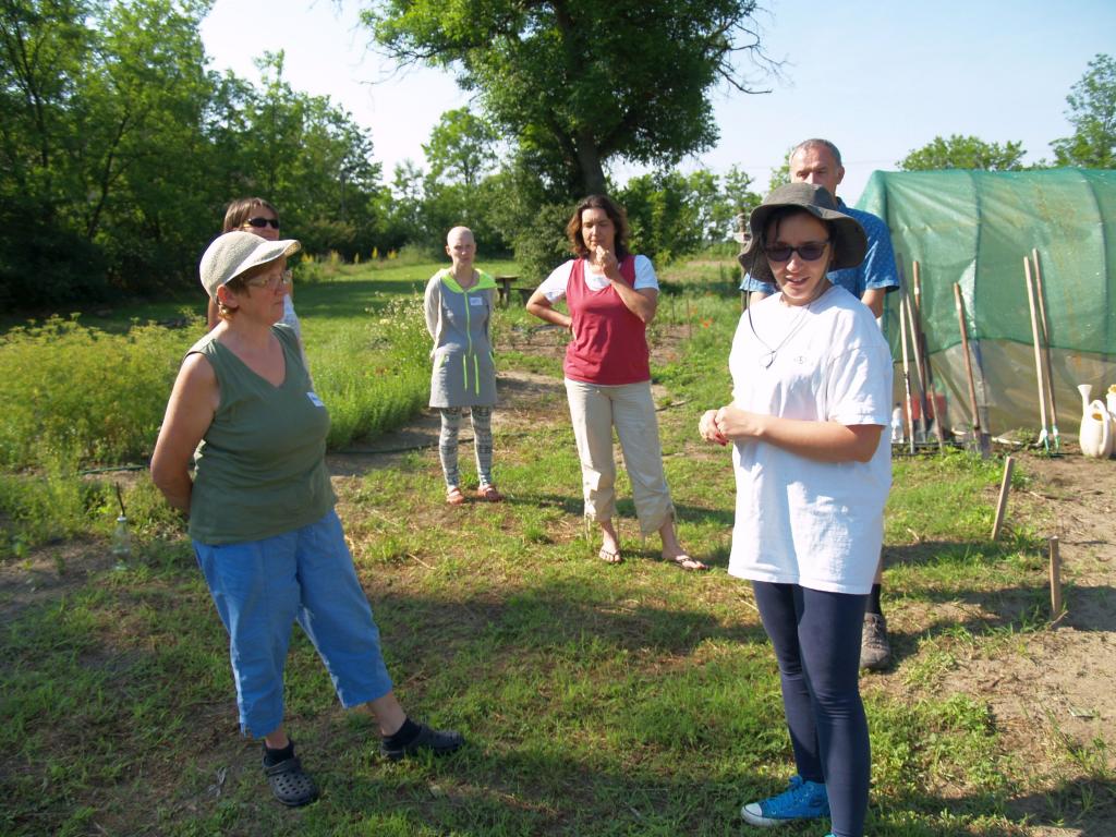 Arra kértük Barbit, hogy munkálkodás közben adja át az anyagot. Ez neki plussz kihívás volt, de a végén bevallotta, hogy kellemes meglepetés is. Rengeteg praktikus információt megosztott velünk és következetesen végigvette a fontosabb témákat (talaj, tápanyagok, talajélet, vetőmagok, vetés, palántázás, talajmunkák, öntözés), illetve az is remek volt, hogy a résztvevők gyomlálás közben is eltrécseltek, s megosztották egymással tapasztalataikat.