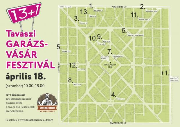 Később is szerveztem még egy-két saját garázsvásárt, mivel költözés előtt álltam, és meg akartam szabadulni a felesleges holmiktól. Sőt, mivel csak a szemben lévő házba költöztem, bevontam az eladómat is, és a szomszédaimat is – gondolván, hogy ha nagyobb a kínálat, több a helyszín, szívesebben eljönnek messzebbről is. Ebből lett aztán az ötlet, hogy 2014-ben, tavasszal csináljunk egy olyan garázsvásárt (Garázsvásár Fesztivált), ahol még több helyszín van, az egész Wekerletelepen. Meghirdettem helyi fórumokon, fb-oldalakon, és hamar összejött a másik öt helyszín, mindenhol több árussal, mert nem mindenki lakhelye alkalmas az árusításra – voltak így befogadók…