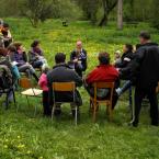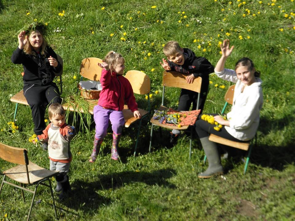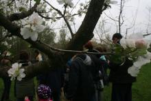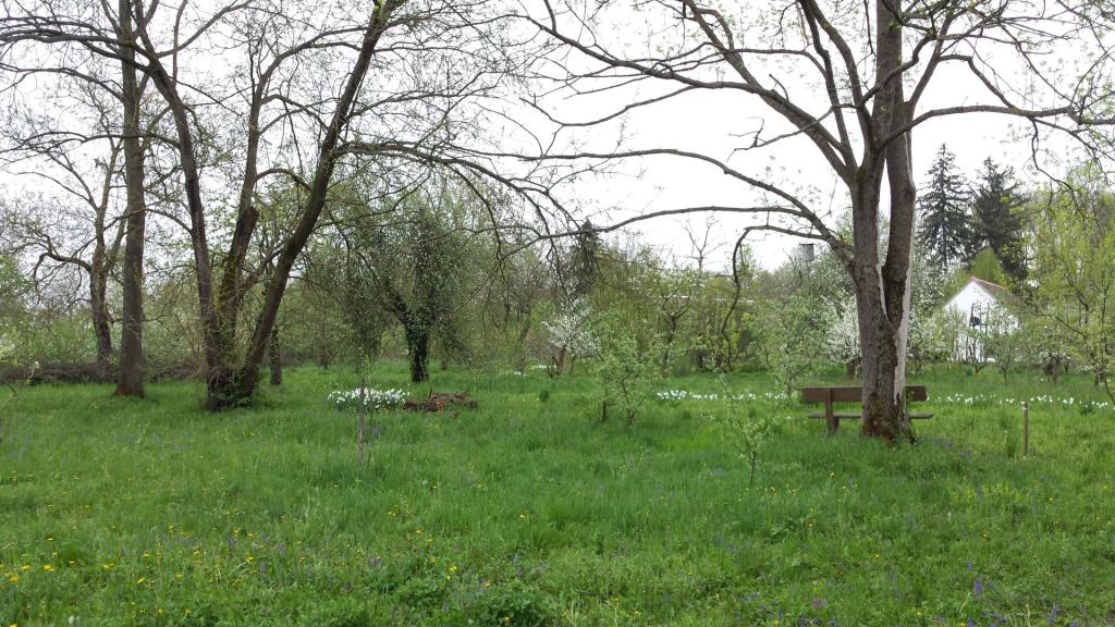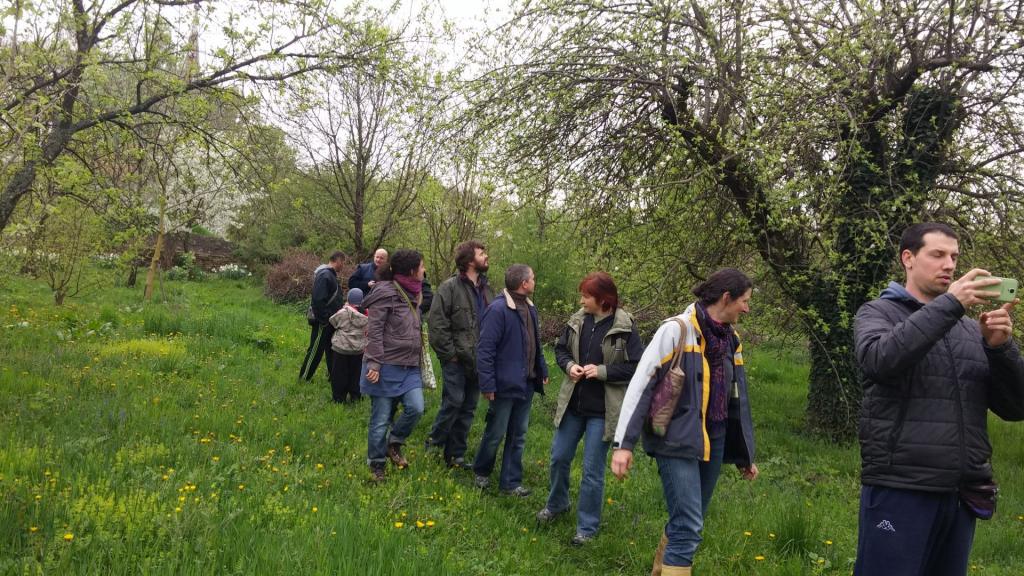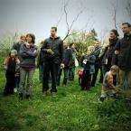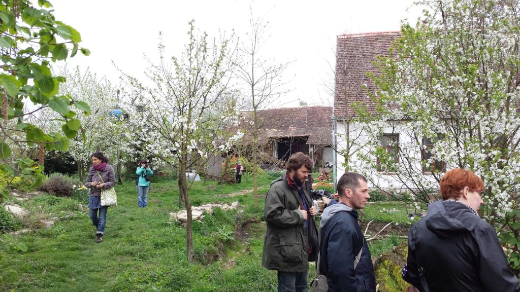 Tizenöt éve, amióta a faluba költöztek, elkezdték kialakítani maguknak azt a csoda világot, amiben a langyossá melegedő időben mi is gyönyörködhettünk. Dúsan, festményekbe illő színekben pompázott a kert, virág és illat-orgia amíg a szem ellát... minden kis csemete fa csurig szebbnél-szebb virágokkal, tövükben pedig a hagymás tavaszi virágok egész palettája: nárcisz, jácint, tulipán. Ibolya óriási tudásának köszönhetően megtudtuk, hogy hogyan is segítik a tavaszi hagymás virágok a kis fákat, a gyümölcsöst borító gyepben lakó rovarok, az egész természet által kialakított és a hozzáértéssel létrehozott környezet a gyümölcsfák életét. Kiderült, hogy a természet olyan bölcs, hogy ha hagyjuk és segítjük a munkáját, akkor a fákat nem kell permetezni, semmilyen agresszív szerrel nem kell beavatkozni a természet törvényeibe. És ezt a fák megháláják.