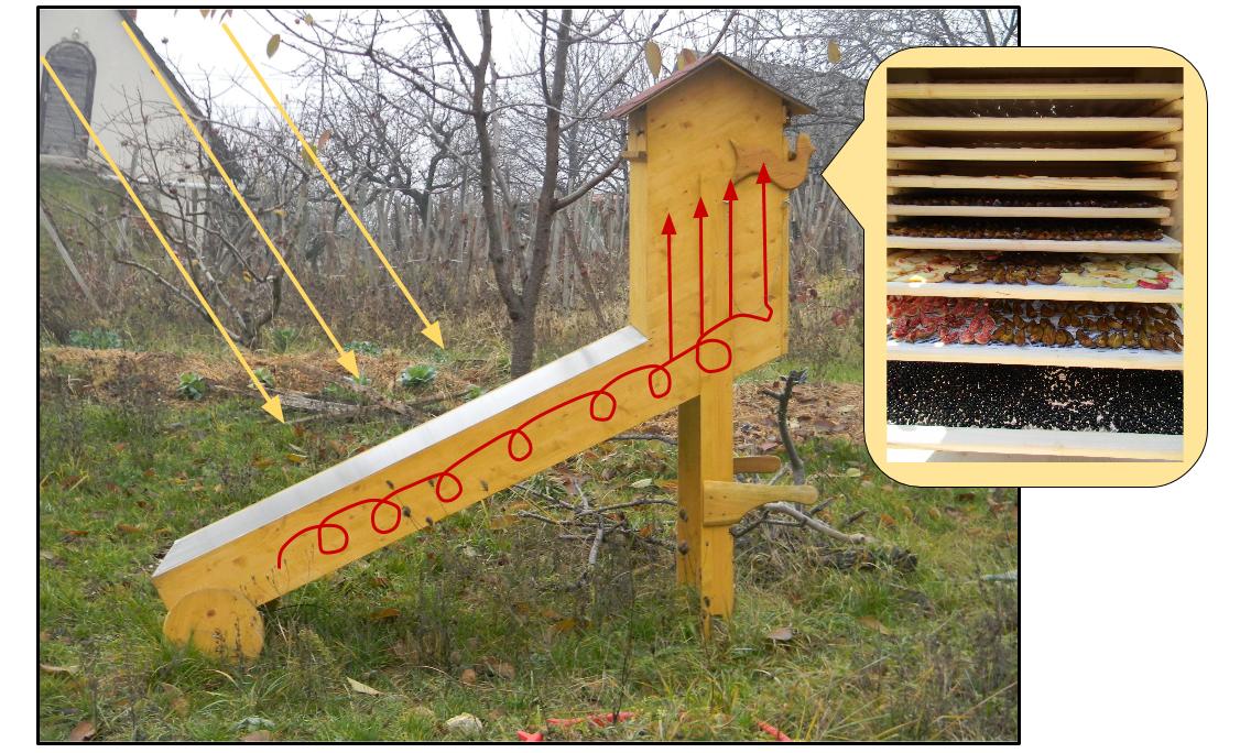 Az aszaló a fenntartható fejlődés modelljébe illeszkedik, nem használ áramot, csupán a napfényt és a meleget. Működési elve praktikus, ötletes. A feketére festett fémlap a napsütés hatására átforrósodik, a felszálló hőt pedig a felkarikázott gyümölcsre, zöldségre vezeti, ami által az egy nap alatt megaszalódik.