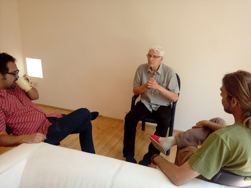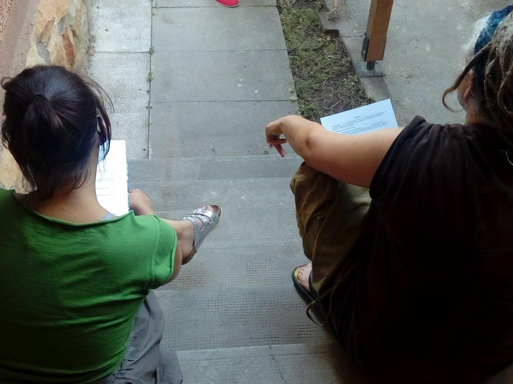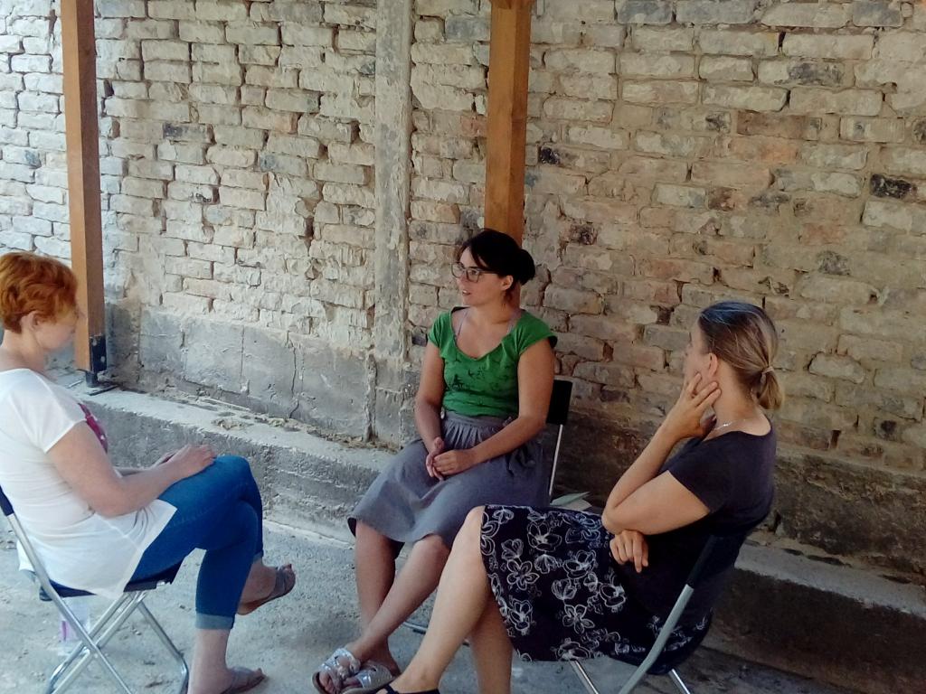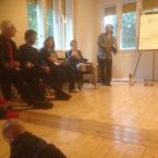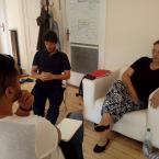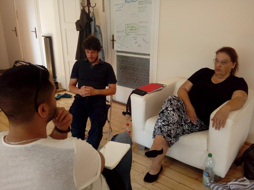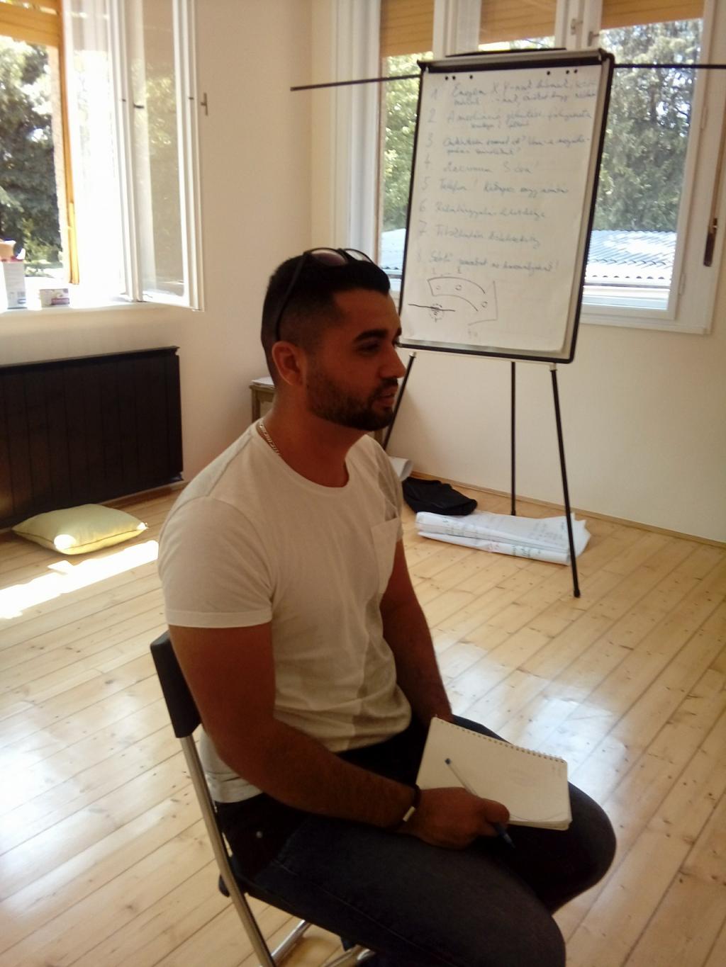 A második nap kezdetén az erőszakmentes kommunikációt gyakoroltuk. Hogyan tudjuk kezelni a konfliktusainkat ha mi is érintettek vagyunk? Nagyszerű gyakorlat volt. Ezután egy szintén meglévő és aktuális - Lókútról behozott telekvitás konfliktust gyakoroltunk kiscsoportosan. István azután azt mondta, hogy “Látszik, hogy elég nagy tudásunk van a témában, hiszen jellemzően a kezdő mediátorok 40 perc alatt lezavarnak egy gyakorlati esetet a trainingeken, míg mi az átalakuló közösségek másfél órás mediációs gyakorlatokat tartottunk, sokkal jobban belementünk a részletekbe.”