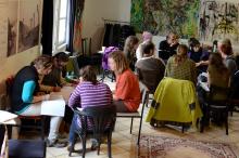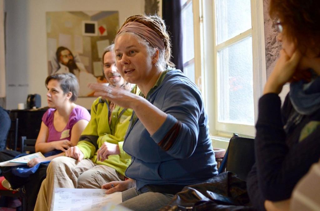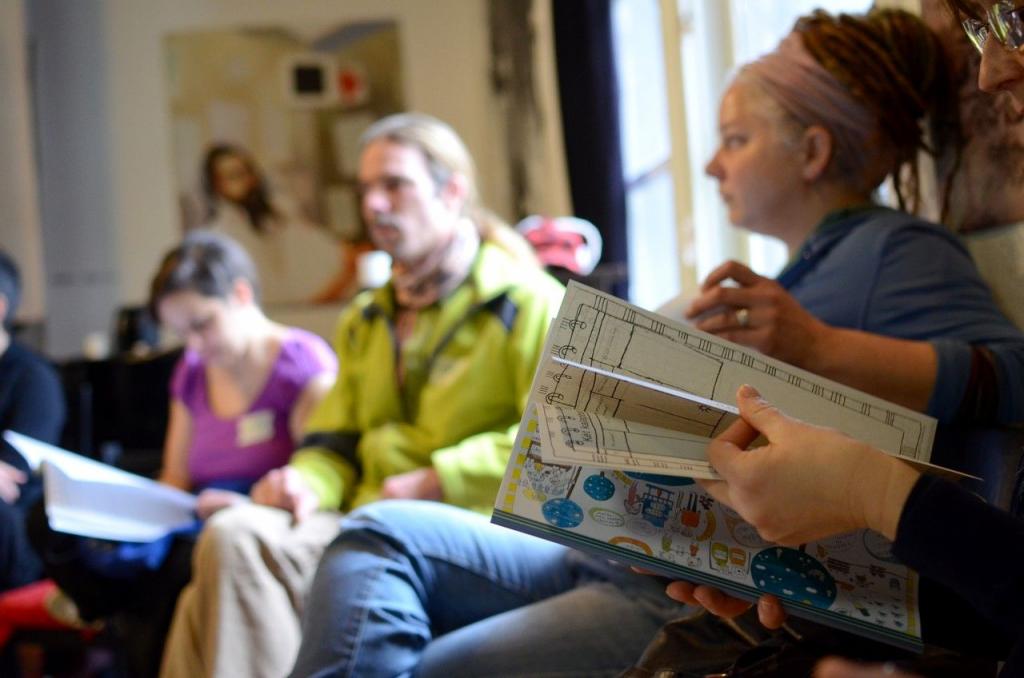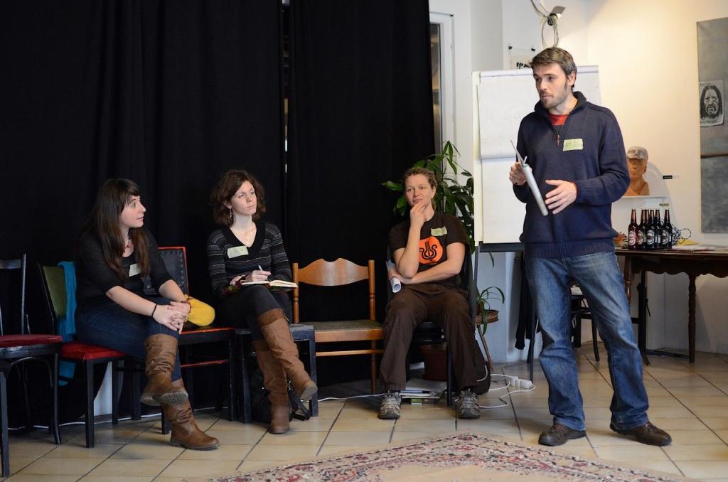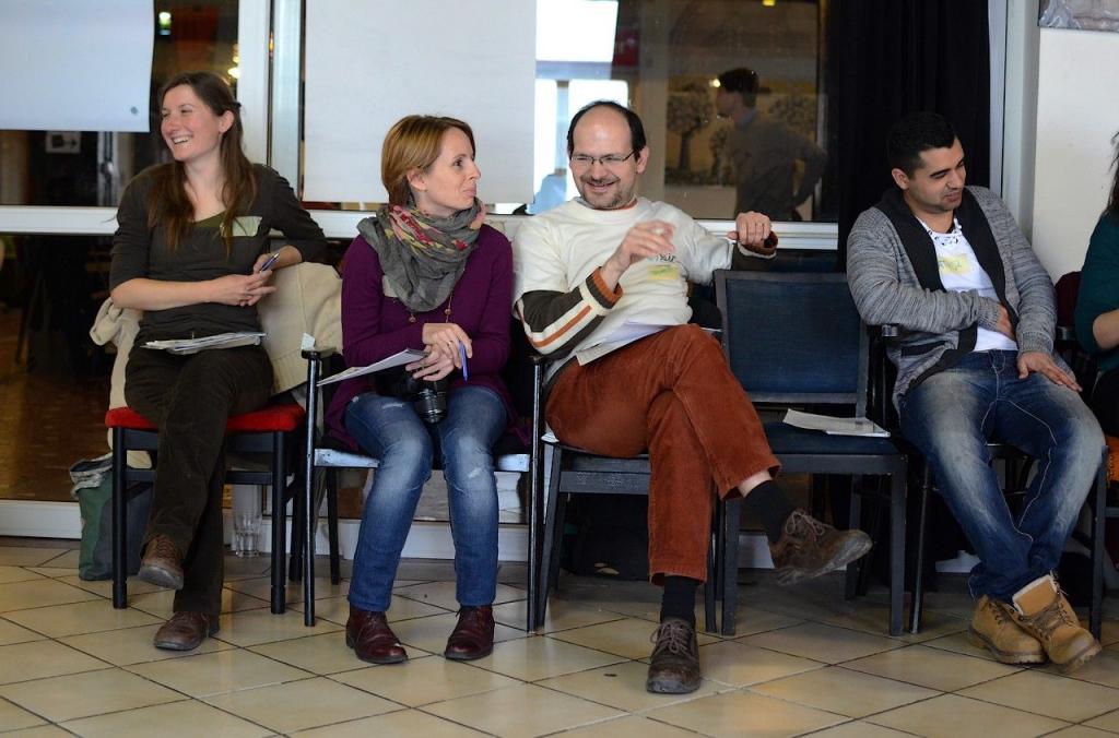 Míg a találkozó első napja a múltidézéssel telt: hogy mire ment el az első év, addig a szombatot a jövőbe nézésre szántuk. Mindenki végiggondolhatta, és elmesélte, milyen gyakorlati dolgot szeretne megvalósítani. Az alomszék építéstől a közösségi kertig sok ötlet elhangzott. Aztán jött a téma kivesézése módszertani segédlettel, amit együtt átrágtunk. Ennek hatására máris volt elgondolás, ami alapos áthangolást igényelt… Ebéd előtt kis csoportokban segédlettel a hónunk alatt és szakmai mentorokkal a hátunkban lehetett átgondolni a projekteket.