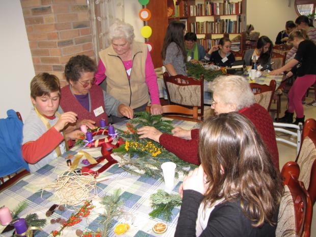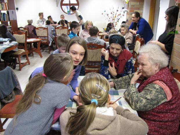 - egy hosszú asztal köré ültessük le az időseket és gyerekeket felváltva (így könnyű párokat és 4-6 fős csoportokat kialakítani)