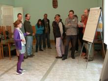 A kezdeti megérkező köszöntő után páros vegyítési játékkal kezdtük az ismerkedést, amit egy hozott személyes jellemző kedvenc tárgy is elősegített. Aztán közös megállapodás kötésével lefektettük az együttműködési normákat. A házigazdák ismertették a helyszínt és megindult mind az önkéntes segítség, mind az esti közös program szervezése, amit végül is az ebédidőre toltunk ki. Visszatérve az aktualizált napi tematikához annak ismertetése után mozgásos gyakorlattal növeltük a biztonságos és figyelő légkör kialakulását: két vonalban egymással szemben felállva párokban elmeséltük egymásnak a képzés iránt támasztott elvárásainkat.