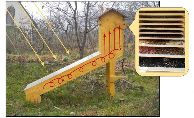 Az aszaló a fenntartható fejlődés modelljébe illeszkedik, nem használ áramot, csupán a napfényt és a meleget. Működési elve praktikus, ötletes. A feketére festett fémlap a napsütés hatására átforrósodik, a felszálló hőt pedig a felkarikázott gyümölcsre, zöldségre vezeti, ami által az egy nap alatt megaszalódik. A fémlap helyett lehet alkalmazni feketére festett sörösdobozokat is, amiknek az alját és a tetejét levágják és egymáshozillesztve összeragasztják. Az így készült csövekben a levegő gyorsan felmelegszik. Ezzel a módszerrel az aszaló, újrahasznosított anyagok felhasználásával készül. A csőházat érdemes olyan szögbe megdönteni, hogy a nap sugarai merőlegesen essenek rá. A csöveket polikarbonáttal fedik le. Ez a legkomolyabb tétel az aszalóban. Az aszaló lehet mobil is, így  ott lehet használni ahol éppen igény van rá.
