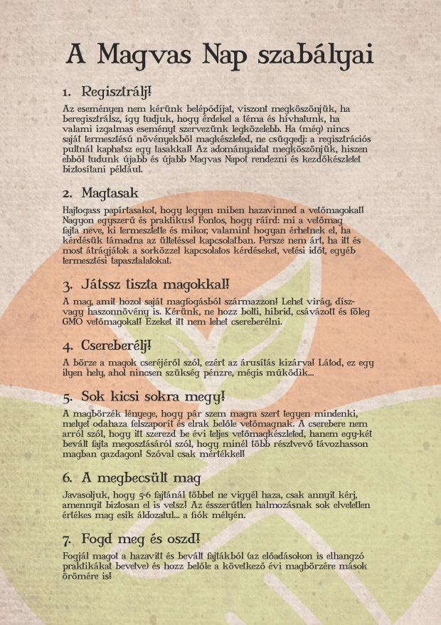 A Kecskeméti Magvas Nap fő célja, hogy a mezőgazdasági önrendelkezést, a bio termelést erősítsük. A tájhoz régóta alkalmazkodott növények jóval nagyobb sikerrel termeszthetők vegyszermentesen, mint a manapság divatos ipari fajták, melyek javarészt külföldi nemesítői munka eredményei. A boltokban kapható vetőmagok nagy százaléka néhány multi kezében van, s mivel kevés kivétellel mind hibrid, ezért minden évben újra és újra meg kell őket vásárolni - ez a kiszolgáltatott helyzet számunkra nyugtalanító. A kertészek ma már nem ismerik azokat az egyszerű fortélyokat, melyek segítségével őseink gondoskodtak a megfelelő saját vetőmagról. Éppen ezért arra szerettünk volna lehetőséget teremteni, hogy bárki szabadon cserélgesse a jól bevált tájfajtákat, illetve tudást szerezhessen a témában, s tapasztalatokat gyűjthessen, ismerkedhessen hasonszőrűekkel. Ezt szolgálja minden év telén a Magvas Nap eseménye.