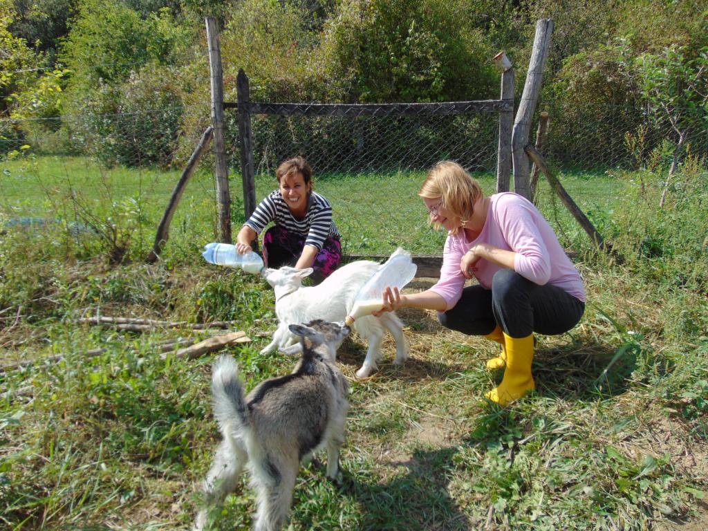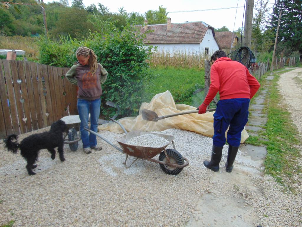 Az elméleti részek közben a a házigazdáknak, Etelkáéknak segédkeztünk, gyümölcsöst gyomláltunk, erdőkertet tisztítottunk, állatokat etettünk. A gyakorlati munka közben is végig beszélgettünk, rengeteg hasznos infót kaptam, például a víz megfogásával kapcsolatban.