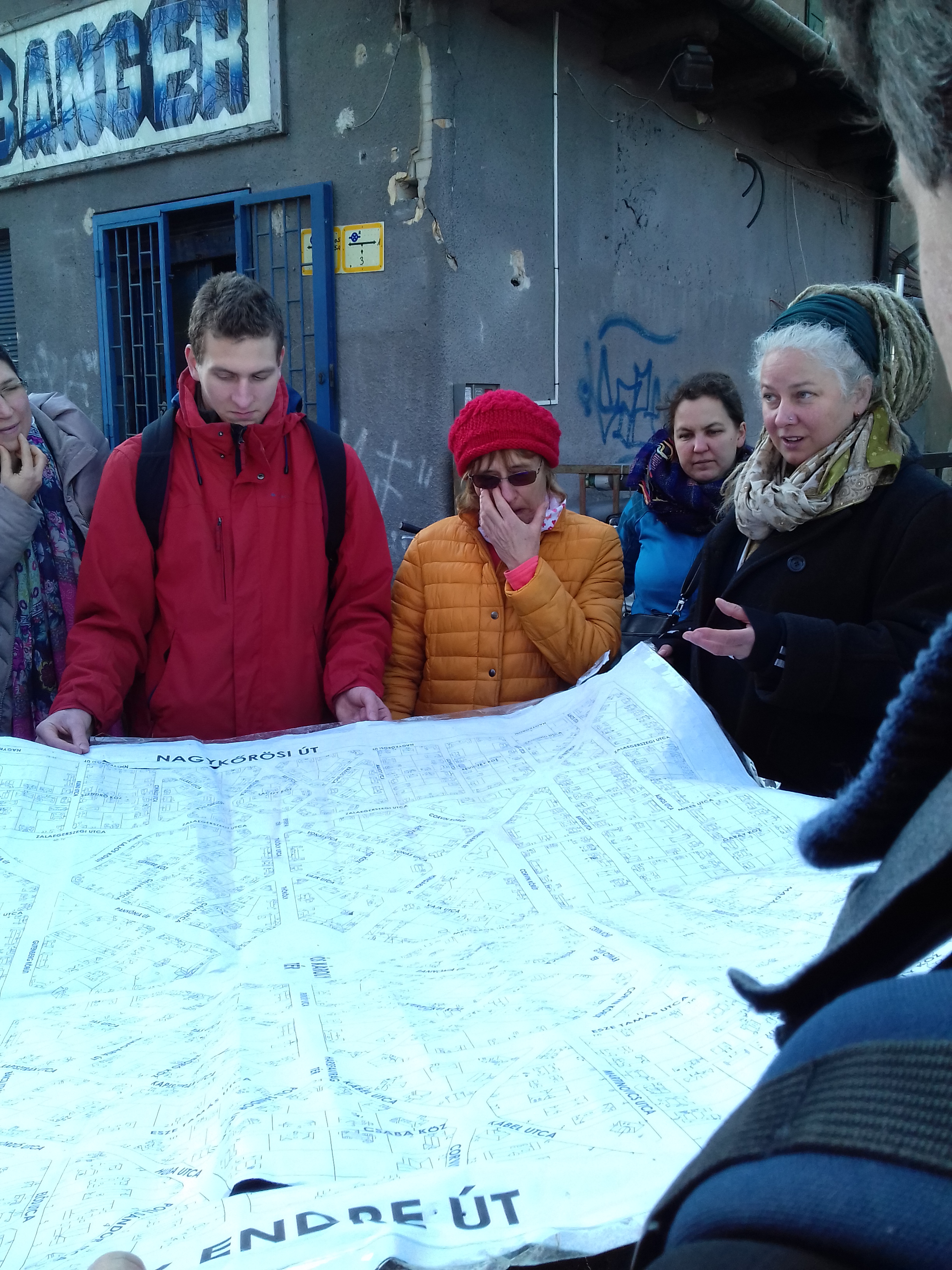 Volt egy nagyon bőséges lehetőségünk arra, hogy feltegyük ezt a kérdést maguknak egy barátságos kutatócsoporttal, az ESSRG-vel ( Economy, Environment and Society Research Group) együttműködésben. Ők két hónapot töltöttek egy EU által finanszírozott Cooperative Responsible Research and Innovation projekt keretén belül a wekerlei közösségben. A közösség különböző ágazatokat képviselő résztvevőivel megnéztük, milyen "Piaci Réseink" vannak, mi most a Domináns Rendszer, kitötöttük a különböző szereplőket összeszedő Helixet, hogy rájöjjjünk, hol vagyunk ezen és ezen a tengelyen meg ezen és ezen a görbén... Bejártuk az üres kiskereskedelmi területeket, felmásztunk a történelmi Seker Attics-ra, spray-festettünk, vacsoráztunk, fókusz-csoport felmértünk és mélyinterjúkat készítettünk. Kerestük a Közös Víziónkat a polgármester-helyettessel, kulturális foglalkoztatottakkal és pálinkafőzőkkel, és próbáltuk ennek az egész folyamatnak a lényegét összefoglalni Valamibe Ami Előre Mutat. Mindez nem volt - ahogy a reményeim szerint a nagybetűkból is látszik - túl egyszerű.