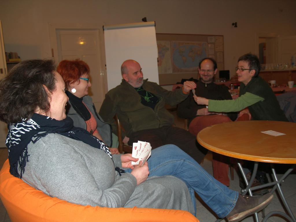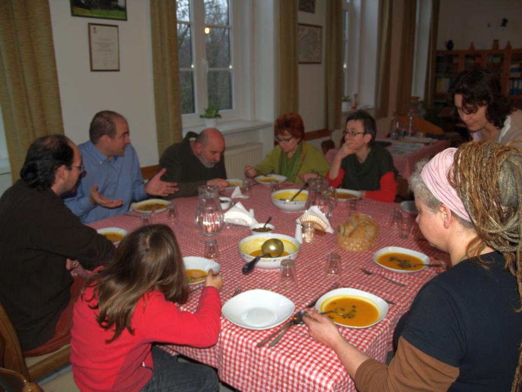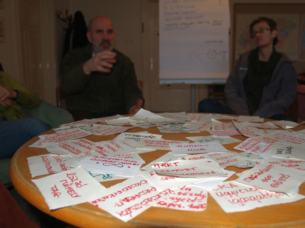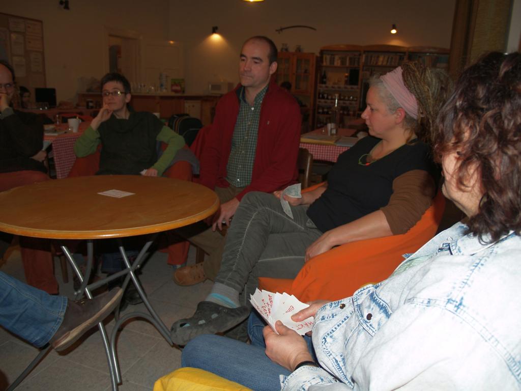 Nagyjából negyedévente ülünk össze ebben a körben, néha bővül egy-egy új résztvevővel a kör: most például Andacs Noémi érkezett, akinek a Tudatos Vásárlók Egyesületének tagjaként például az ökokörök hazai elterjesztését köszönhetjük. Eljött a Civil Kollégium Alapítványtól Mészáros Zsuzsa, az Inspi-Ráció Egyesülettől Szép Éva és Vágvölgyi Gusztáv (Pabló), a Kisközösségi Programot Kükedi Zsolt képviselte, a Zöld Utak Módszertani Egyesület tagjaként jött Budai Krisztina, a Magyarországi Átalakuló Közösségeket Támogató Csoport részeként vett részt Kovács Bence, Tracey Wheatley és Bérces Dóra.