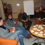Ez a harmadik ilyen összejövetel volt, eddig a leghosszabb és legtartalmasabb találkozó. Addig ismerkedgettünk, most kezdtünk a konkrétumok irányába mozdulni, és ugyanakkor közelebbről látni egymást, összecsiszolódni. Az a jó egy alakuló csapatban, amikor biztos keretek között látjuk egymás kis furaságait, kóstolgatjuk egymás egyéniségét, egymás gondolatain kezdünk pörögni: akkor érezzük, hogy szellemileg fogunk ebből az együttlétből nőni, töltődni.