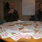 Aztán a reggel ránéztünk erre az eredményre, átéreztük annak a felelősségét, hogy az összes cetli mögött emberek, közösségek vannak. Majd úgy határoztunk lekerekítjük a tegnapi bemutatkozásunkat az egyéni küldetéseink megvalósításával és az ezekből összegyűjtöttük a számunkra fontos (közös) fogalmakat. A végén megállapítottuk, hogy a fogalmak mögött lévő értékeink nagyon közel állnak egymáshoz, azaz közös érték alapon vagyunk.