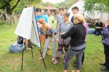 Az első két napban bejártuk a területet, feltérképezve a helyi erőforrásokat. A résztvevőkkel együtt alakítottuk ki a munkacsoportok megszervezésének szabályait. A rotációt szem előtt tartottuk, azaz próbáltunk mindenkit a lehető legtöbb különböző workshopba beosztani.