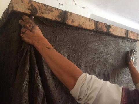 A külső vakolás alá zsákvászon került.